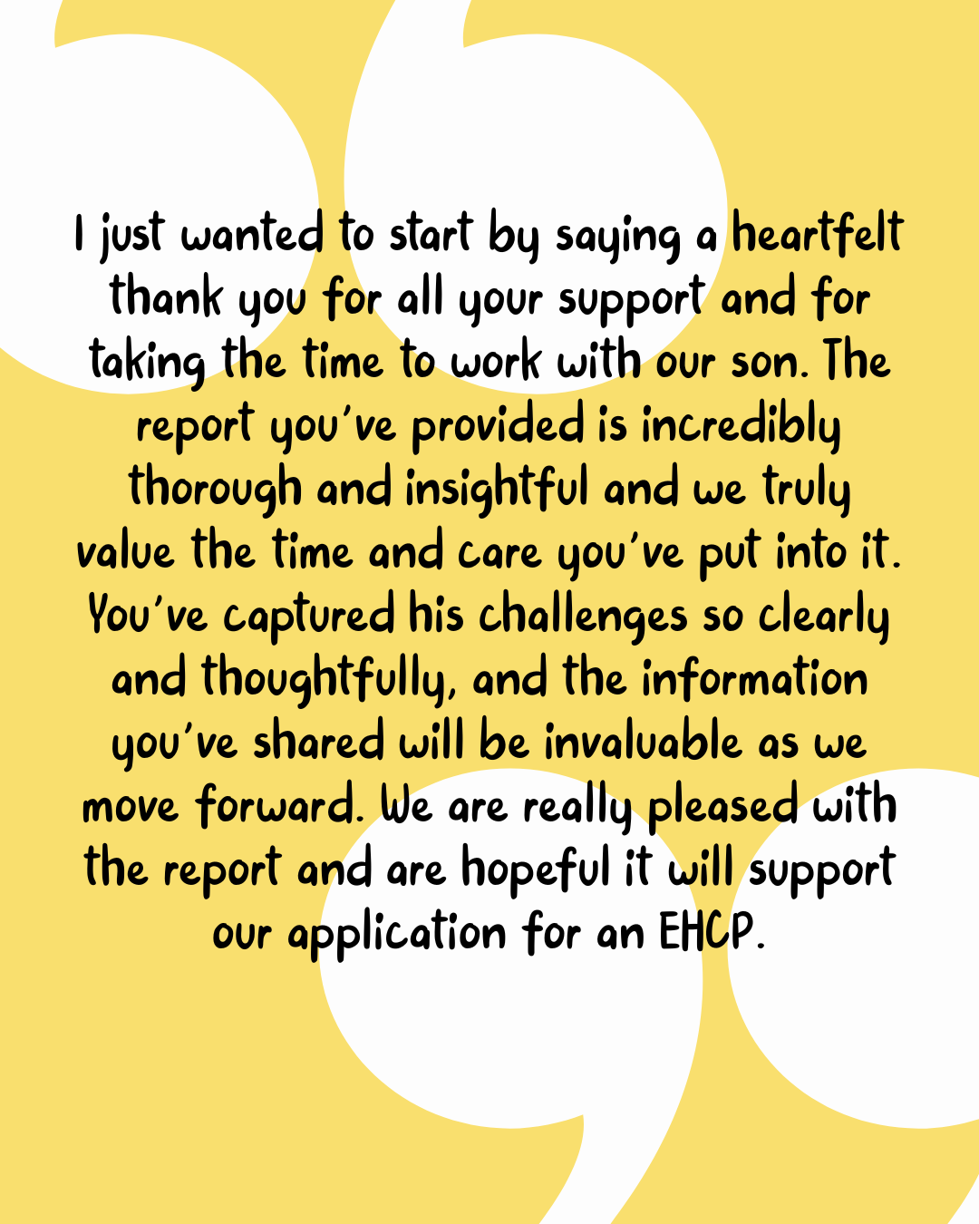 The assessments aim to identify any special educational needs and provide recommendations. These detailed assessment reports can then be used by parents in a variety of ways to apply for an Education, Health and Care plan or share with the school to demonstrate their child’s special educational needs and disabilities. To register your expression of interest please complete our form here and we’ll be in touch!